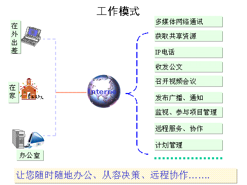 - 全面个人事务管理系统,日程安排、名片管理、公告贴、日志管理等一应俱全,配合一系列的自项目协同工作系统,功能模块包括:公告版、讨论区、协同文档区、日程计划和贴图白板等,员工(成员)可以轻松构建远程协同工作组,并对协同工作的项目事务进行有效的管理和沟通;动化服务功能,让您即时拥有一个贴心秘书;